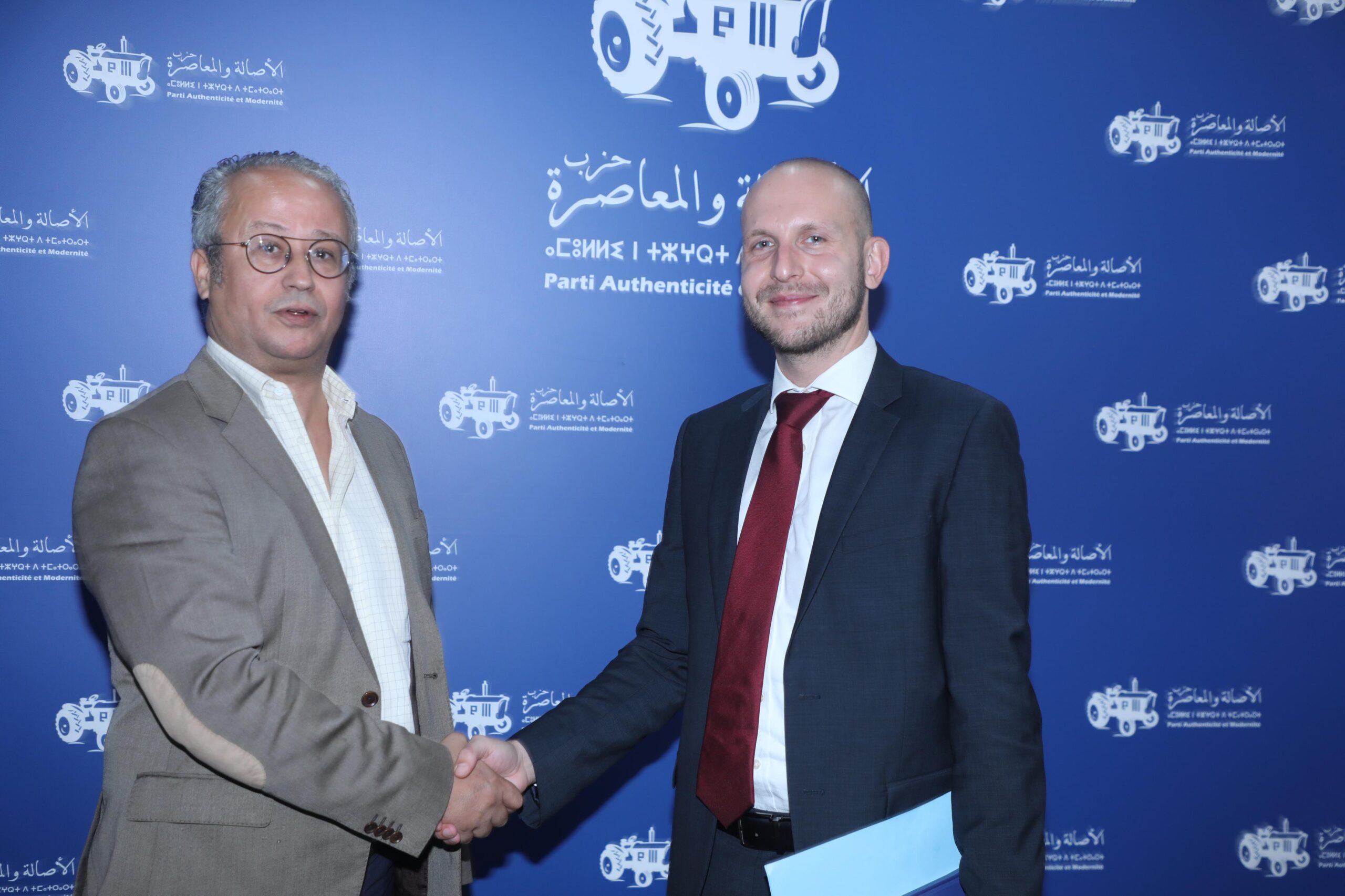 عقد، عضو المكتب السياسي لحزب الأصالة والمعاصرة؛ يونس معمر، يومه الخميس 24 أكتوبر 2024، لقاء مع المستشار الأول لشؤون السياسية بالسفارة البريطانية بالمغرب، السيد Alexander Pytka، وذلك في إطار تعزيز الدبلوماسية الحزبية وبحث التعاون المشترك بين الطرفين.