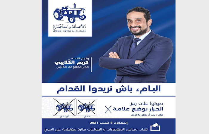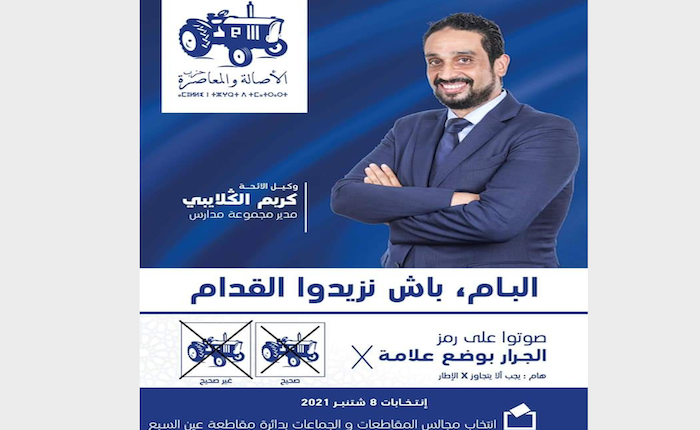 اختار حزب الأصالة والمعاصرة كريم الكلايبي وكيلا للائحة الاصالة والمعاصرة في الانتخابات الجماعية المقبلة بالدائرة الإنتخابية مقاطعة عين السبع بالدار البيضاء، والتي من المزمع إجراؤها يوم 8 شتنبر المقبل.