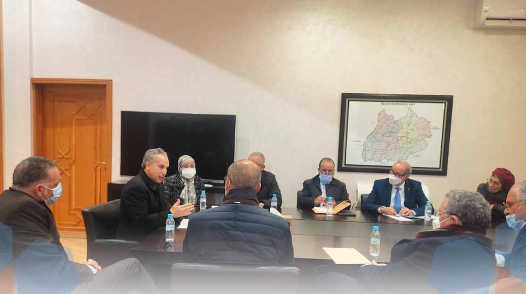 في إطار المقاربة التشاركية التي ينهجها مجلس جهة مراكش اسفي، عقد السيد سمير كودار رئيس المجلس، يوم الثلاثاء 18 يناير 2022، جلسة عمل مع السيد يوسف محيي، رئيس الاتحاد العام لمقاولات المغرب- فرع جهة مراكش اسفي؛ السيد يوسف محيي؛ بحضور السيدات والسادة أعضاء الاتحاد العام، ممثلي مختلف القطاعات الاقتصادية.