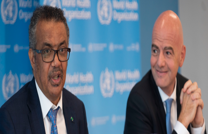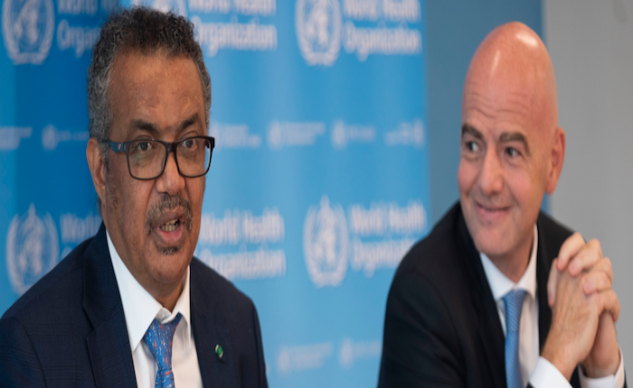 وكان الاتحاد بمعية منظمة الصحة العالمية قد أطلقا في وقت سابق، حملة توعية قادها أشهر لاعبي كرة القدم حول العالم، من أجل دعوة جميع الناس في شتى أنحاء العالم إلى اتباع الخطوات الرئيسية الخمس لوقف انتشار وباء كورونا. وقد تعهد الاتحاد الدولي لكرة القدم، كذلك، بالتبرع بمبلغ 10 ملايين دولار لدعم صندوق المنظمة العالمية للصحة التضامني الخاص بمواجهة الوباء.