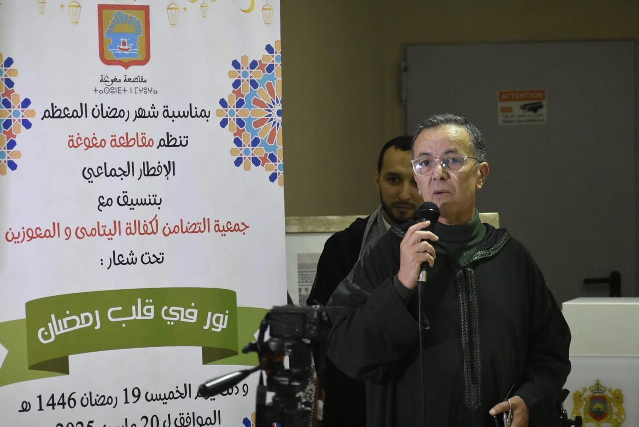 نظم مجلس مقاطعة مغوغة، بالتنسيق مع جمعية التضامن لكفالة اليتامى والمعوزين، إفطارا جماعيا بدار الشباب طنجة البالية، تحت شعار: “نور في قلب رمضان”، وذلك بمناسبة شهر رمضان المبارك.