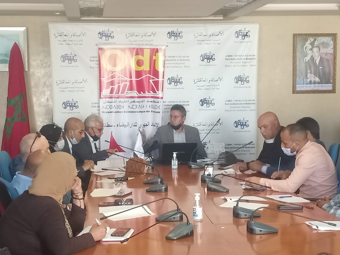 نظم مكتب الإتحاد الجهوي للمنظمة الديمقراطية للشغل، يوم الخميس 29 أبريل 2021، بالمقر الجهوي لحزب الاصالة والمعاصرة لجهة الدار البيضاء سطات، ورشة تكوينة حول “انتخابات مندوبي الأجراء”، من تأطير حسن لعجاج المدير الإقليمي لوزارة الشغل والإدماج المهني بعمالة مقاطعات الفداء مرس السلطان.