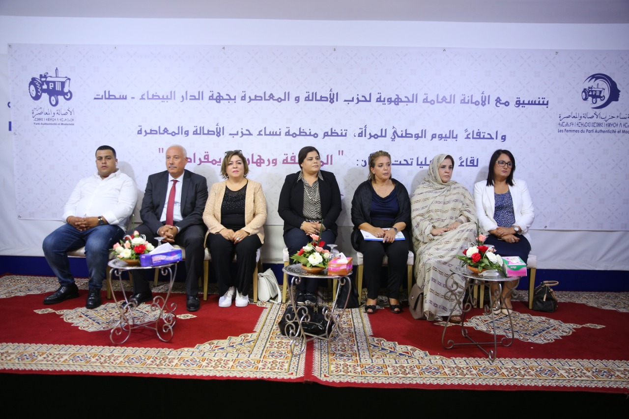 احتفاء باليوم الوطني للمرأة، انطلقت، اليوم الخميس 10 أكتوبر 2019 بالمقر الجهوي لحزب الأصالة والمعاصرة بجهة الدار البيضاء سطات، أشغال اللقاء التواصلي الذي تنظمه منظمة نساء حزب الأصالة والمعاصرة تحت عنوان: “المناصفة ورهان الديمقراطية”، وذلك بتنسيق مع الأمانة العامة الجهوية للحزب.