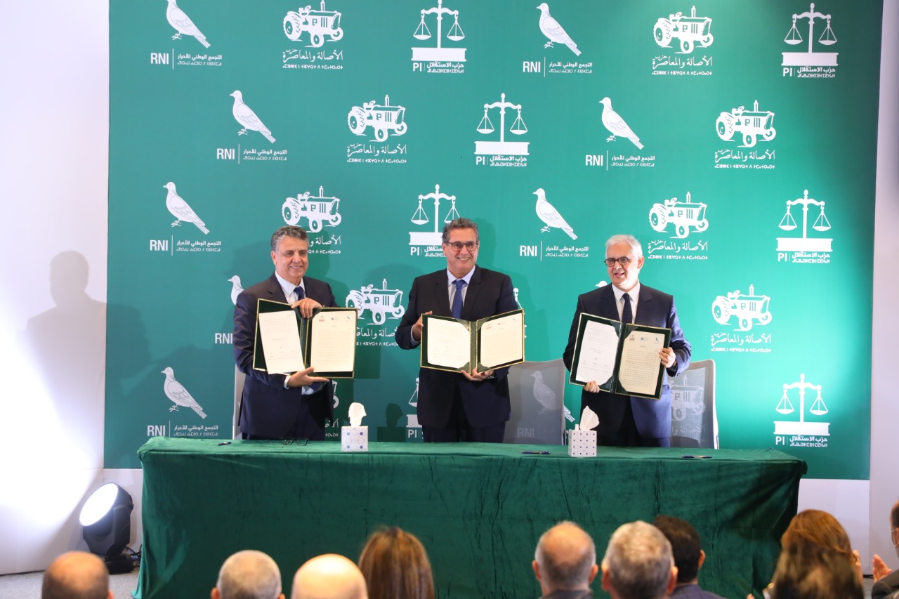 أكدت أحزاب التجمع الوطني للأحرار والأصالة والمعاصرة والاستقلال أن التوقيع على ميثاق الأغلبية يأتي إيمانا بحجم التحديات التنموية والسياسية والحقوقية المختلفة التي تواجهها بلادنا في مختلف المجالات، والتي زاد من تفاقمها الأزمة الوبائية العالمية لفيروس كورونا، معبرة عن وعيها بضرورة الاجتهاد وبذل التضحيات الجسام والابداع والابتكار في الحلول، والتعبئة الجماعية المسؤولة لكل مكونات الأغلبية الحكومية لكسب الرهانات والتحديات.