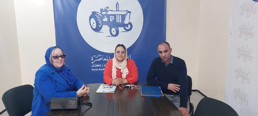 في إطار سياسة القرب التي ينهجها فريق الأصالة والمعاصرة بمجلس النواب، عقدت عضو الفريق، نادية بزندفة، بمقر الحزب بآسفي، لقاء مع رئيسة جمعية الهمم للتثلث الصبغي، بحضور الكاتب العام للجمعية.