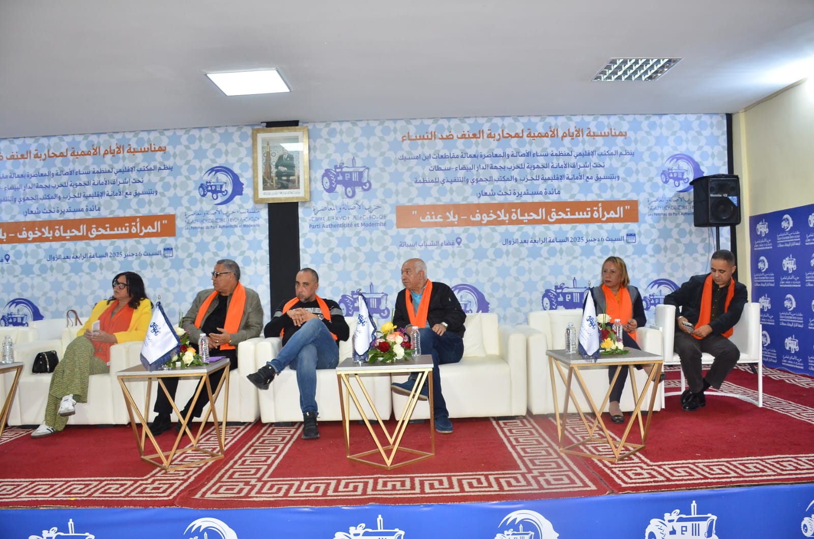 نظم المكتب الإقليمي لمنظمة نساء حزب الأصالة والمعاصرة بعمالة مقاطعات ابن امسيك، يوم السبت 6 دجنبر 2025، لقاء تواصليا بفضاء الشباب اسباتة بالدار البيضاء، وذلك تخليدا للأيام الأممية لمناهضة العنف ضد النساء، وتحت إشراف الأمانة الجهوية للحزب بجهة الدار البيضاء– سطات، وبتنسيق مع الأمانة الإقليمية والمكتبين الجهوي والتنفيذي للمنظمة.