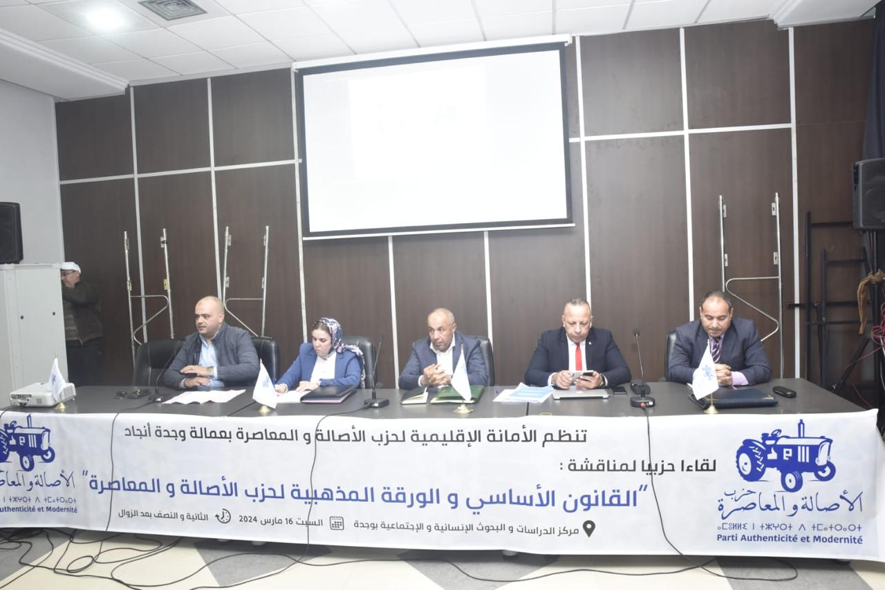 نظمت؛ الأمانة الإقليمية لحزب الأصالة والمعاصرة بعمالة وجدة أنجاد، يوم السبت 16 مارس 2024، لقاء خصص لعرض مضامين القانون الأساسي والوثيقة المرجعية للحزب، المصادق عليهما خلال أشغال المؤتمر الوطني الخامس.