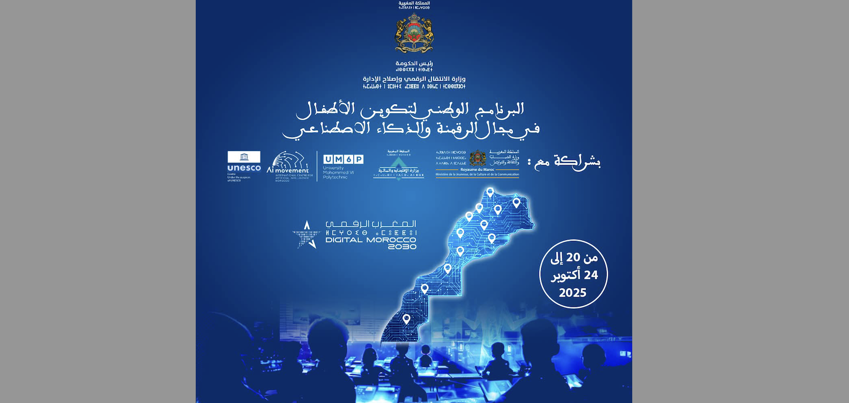تعلن؛ وزارة الانتقال الرقمي وإصلاح الإدارة عن إطلاق البرنامج الوطني لتكوين الأطفال في مجالي الرقمنة والذكاء الاصطناعي، بشراكة مع وزارة الشباب والثقافة والتواصل، ووزارة الاقتصاد والمالية، والمركز الدولي للذكاء الاصطناعي بالمغرب – AI Movement-UM6P، التابع لجامعة محمد السادس متعددة التخصصات التقنية، وهو مركز من الفئة الثانية تحت إشراف منظمة اليونسكو.