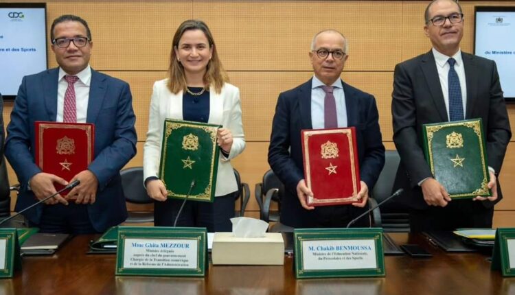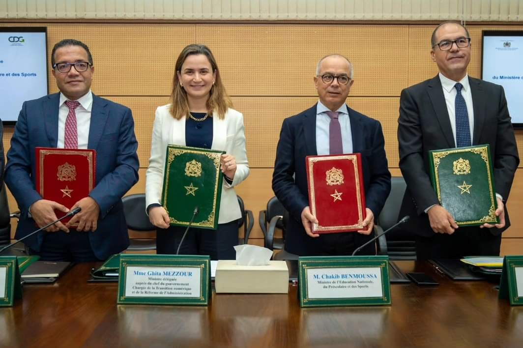 وقعت وزارة الانتقال الرقمي وإصلاح الإدارة، ووزارة التربية الوطنية والتعليم الأولي والرياضة، والوزارة المنتدبة لدى وزيرة الاقتصاد والمالية المكلفة بالميزانية، وصندوق الإيداع والتدبير، اتفاقية شراكة استراتيجية بين هذه القطاعات الوزارية وصندوق الإيداع والتدبير، لإرساء مختبر رقمي من أجل تسريع وتيرة التحول الرقمي بالمنظومة التربوية.