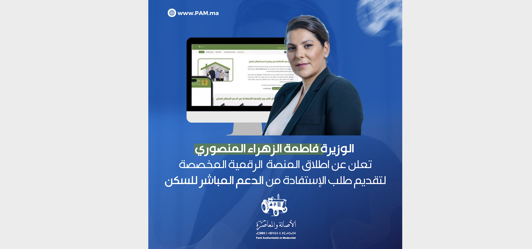 قناة الحزب وزيرة الإسكان فاطمة الزهراء المنصوري تعلن اليوم الثلاثاء عن إنطلاق عملية التسجيل في المنصة الرقمية المخصصة لتقديم طلب الإستفادة من الدعم المباشر للسكن بواسطة بام آخر تحديث 2024-01-02 0 1٬051 شارك Voir cette publication sur Instagram Une publication partagée par Fatima Ezzahra El Mansouri (@fatima.ezzahra.elmansouri)