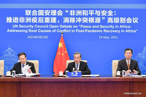 بصفتها رئيسا لمجلس الأمن الدولي لشهر ماي، عقدت الصين مناقشة مفتوحة لمجلس الأمن حول “السلام والأمن في إفريقيا: معالجة الأسباب الجذرية للصراع في إطار تحقيق التعافي بعد أزمة الوباء في إفريقيا”.