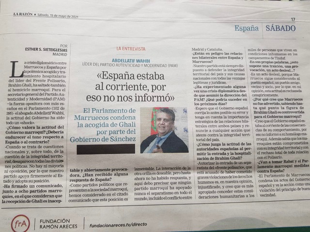 وأكد وهبي في حوار مع صحيفة “لارازون” الإسبانية حول موضوع العلاقات المغربية الإسبانية على هامش استضافة مدريد لزعيم جبهة البوليساريو الانفصالية، – أكد – أن الأحزاب المغربية وهي تمثل المجتمع المغربي تأسفت لقرار الحكومة الإسبانية وهي أحزاب مغربية لم يسبق لها أن ساندت الانفصال بما في ذلك ما حدث بين مدريد وجهة كاتالونيا.